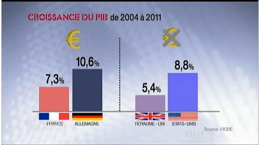 - Ce n’est pas parce qu’on place le signe « € » qu’on établit une corrélation entre des évolutions de PIB ou d’emploi et une monnaie. L’établissement d’une corrélation demande une étude statistique dont je ne vois nulle trace ici.